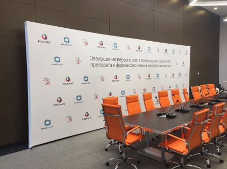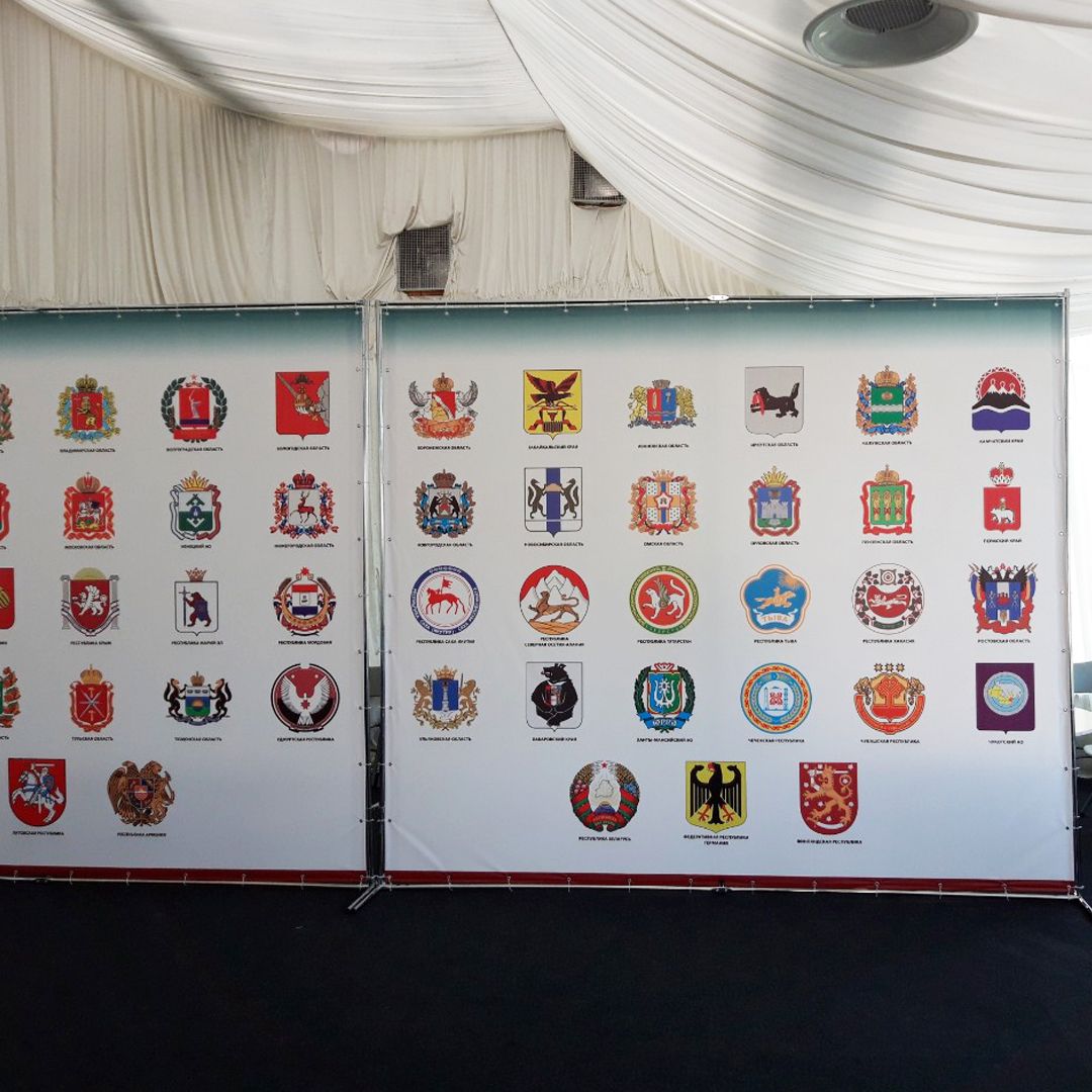 В наличии конструкции от недорогих ролл-апов до широких пресс-волов и мобильных промостоек
